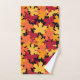 A towel set featuring a fall maple leaf pattern in an autumn colour palette. Makes a beautiful addition to your bathroom or home in fall or Thanksgiving.