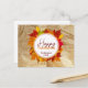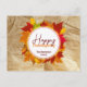 Discover the true spirit of appreciation and unity with our custom Thanksgiving postcard. Immerse in the charm of a contemporary font blend, where an elegant hand-crafted script beautifully harmonizes with a polished modern sans serif. Enclosed within a flawless white circle, embellished by a subtle crimson trim, you'll find maple leaves in a mesmerizing array of fall shades – an effortless progression from radiant golds to blazing reds and deep browns. The text serves as a blank canvas, ready for your individualized flourish to craft a genuinely one-of-a-kind message.