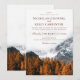 This invitation is perfect for fall themed mountain wedding. The design features rustic terracotta forest trees and snowy mountains on the back.