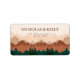 This label is perfect for fall-themed mountain weddings. The design features rust terracotta forest trees and snowy mountains.