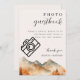 Create a memorable and heartfelt guestbook experience with this Fall Mountain Wedding Photo Guestbook Table Card. Designed in a convenient 5” x 7” size, this card is the perfect addition to your guestbook table, inviting loved ones to snap a photo, share a message, and leave their well wishes for the happy couple. With a stunning mountain backdrop accented by warm fall colors, it beautifully complements any rustic, boho, or outdoor autumn wedding.