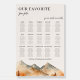 Guide your guests with elegance and warmth using this Fall Mountain Wedding Seating Chart, designed with the theme “Our Favorite People” to reflect the love and joy of your special day. Inspired by the golden colors of autumn and the breathtaking beauty of mountain landscapes, this sign is more than just practical, it’s a statement piece that blends seamlessly into your rustic or outdoor wedding décor.