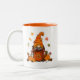 Cute gnome fall/Halloween hot chocolate mug with bits of chocolate! Can be used for coffee or hot chocolate!