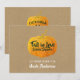 Plain white envelopes are included with paper invitations and will come to fit the invitation size you select. If you don’t need the envelopes, you may choose to not receive them by selecting the dropdown below "Envelopes" and choosing "None." If you’d like to have a design on your envelopes, you can browse all of these available envelopes to find the design that complements your Fall Orange Glittered Autumn Pumpkin Bridal Shower Invitation.