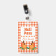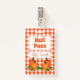 A hall pass badge with a fall theme . This one has an orange and white Buffalo plaid pattern and two pumpkins . Personalize it with the type of hall pass your want (hall pass , nurse pass , library pass , office pass ,etc ) and the name of the teacher . Ideal for elementary , middle or high school .This badge is also available with a black and white Buffalo check pattern .