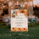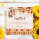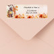 A rose gold, blush pink gradient background. Decorated with a vintage lantern and orange fall tree leaves. Personalize and add your name and address. Black letters.