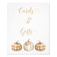 Pumpkin themed baby shower table top sign in natural tones featuring three pumpkins, two being in a plaid pattern and one with a floral arrangement. This cards and gifts little pumpkin baby shower sign is ideal for an autumn or fall baby shower.