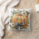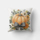 Fall Orange Pumpkin with Checked Bow Throw Pillow