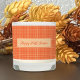 A pretty orange Tartan pattern little jar with a vanilla scented candle inside . Perfect to have on hand during the fall season .Personalize it with our own text . Add a lid if you want to .
