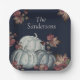 Fall Party Blue pumpkin, Happy Thanksgiving, watercolor pumpkins, fall decor, autumn pumpkin flowers, blue Thanksgiving party paper plates.