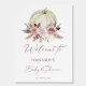 This little pumpkin fall floral baby shower welcome sign is perfect for an elegant baby shower. The design features a beautiful watercolor white pumpkin with pink and peach boho florals. An elegant script font is the perfect finishing touch. Personalize with all of the details for your baby shower.
