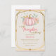 Plain white envelopes are included with paper invitations and will come to fit the invitation size you select. If you don’t need the envelopes, you may choose to not receive them by selecting the dropdown below "Envelopes" and choosing "None." If you’d like to have a design on your envelopes, you can browse all of these available envelopes to find the design that complements your Fall Pink Pumpkin Baby Shower Invitation.