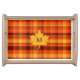 This gorgeous serving tray is perfect for fall. The design features a colorful fall pattern. A maple leaf appears in the center where you can customize the design with your initial. A great serving tray for your fall parties. Copyright Kathy Henis