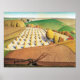 Fall Plowing is a 1931 oil on canvas painting by Grant Wood that vividly depicts a plowed field in his native Iowa, celebrating the agricultural transformation of the American Midwest. The painting highlights the recently developed walking plow and steel plowshare, symbolizing the impact of modern technology on farming and the cultivation of prairie land. Wood’s composition balances natural beauty with geometric precision, emphasizing the harmony between nature and industry. With its bright palette and stylized forms, Fall Plowing stands as a quintessential example of American Regionalism, reflecting pride in rural life and innovation. The original painting is part of the John Deere Corporation collection.