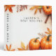 A cozy autumn pumpkin binder cover with seasonal watercolor elements, perfect for fall recipe collections.
