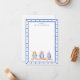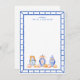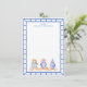 This chic note card features 3 different ginger jars with orange bows and pumpkins. The border around the card is a blue bamboo frame. You can personalize with your name.