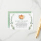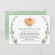 This baby shower book request enclosure card features a watercolor pumpkin and fall greenery gold foliage wreath.