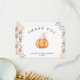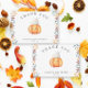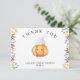 "A little pumpkin is on the way. Celebrate with this baby cartoon pumpkin themed for baby shower party! Watercolor cute cartoon kawaii pumpkin with autumn hat (cap) and fall leaves. On the reverse side of the card are autumn leaves.