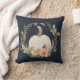 Fall Pumpkin Navy Blue Peach Rust Floral Foliage Throw Pillow