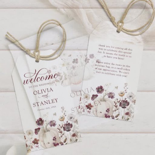Boho autumnal return address labels featuring rustic fall watercolor wildflowers and charming pumpkins, along with your names and address.