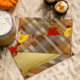 Personalized Thanksgiving envelope design featuring pumpkins, leaves and red berries on a autumn colored plaid background. In the center of the design there is a gold brushstroke and on the back of the envelope your name and address. To change it use the Personalize option. For more changes, such as changes to the font, font color or text layout, use the Edit design tool option.