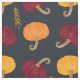 Fall Pumpkins and Leaves on Blue Pattern Fabric