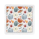This design features a beautiful autumn-themed pattern with a focus on pumpkins and other fall harvest elements. The design includes various pumpkins in shades of orange, cream, and muted blue, each detailed with subtle watercolor textures. Complementing the pumpkins are elements like corn on the cob, autumn leaves in warm earthy tones, berries, and slices of pumpkin pie. The pattern is set against a crisp white background, allowing the rich colors and detailed illustrations to stand out. This design captures the essence of the fall season, evoking feelings of warmth, harvest, and festive celebration.