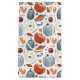 This design features a beautiful autumn-themed pattern with a focus on pumpkins and other fall harvest elements. The design includes various pumpkins in shades of orange, cream, and muted blue, each detailed with subtle watercolor textures. Complementing the pumpkins are elements like corn on the cob, autumn leaves in warm earthy tones, berries, and slices of pumpkin pie. The pattern is set against a crisp white background, allowing the rich colors and detailed illustrations to stand out. This design captures the essence of the fall season, evoking feelings of warmth, harvest, and festive celebration.