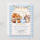 Elegant Blue Gingham Autumn Pumpkin Diaper Party Invitation
