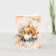 Custom blank greeting card featuring fall pumpkins, flowers, leaves, and branches botanical watercolor design.