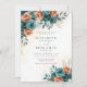 Fall Romantic Teal Burnt Orange Floral Wedding Invitation