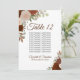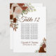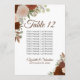 These elegant wedding table cards feature a rustic boho chic design with hand painted watercolor roses in fall or autumn colors including shades of rust orange, burnt umber, and coral peach. The card includes a list of names so your guests will have an easy time finding the right table.