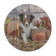 Little Sheltie puppy in a fall scene with fall leaves and pumpkins. © and ® Bigstock® - All Rights Reserved.