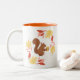 A happy giving squirrel holds a gifted nut from autumn's bountiful harvest. Leaves of lemon yellow, burnt sienna, and coral adorn the scene. Original illustration by Noël Snow.