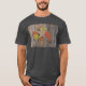 My 11 yo wore adult XL (5’7” 165#). The 8yo is small framed. She wore adult small and tied it in the back. Grandma wore adult large with long sleeve shirt underneath. Tall girl adult medium. Dark haired male adult large. Good quality dark Heather gray, Gildan brand shirt. -it was next up from basic choice and cost about $20 per shirt. Not too thick or thin. Washed and dried well, no major shrinkage. Not see-through. Can wear a bra under it fine. Screen print is just as shown and well done, front and back.