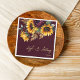 Fall summer wedding Burgundy and yellow sunflowers greenery burgundy background gold frame boho rustic floral wedding template napkins personalized wedding tableware