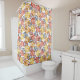 This shower curtain has a Fall art deco design of swirls in yellow, gold, orange, cranberry, and navy on a field of white. If you want the same design with different colors, message me.