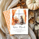 Introducing a beautifully crafted fall moving announcement card designed to capture the essence of new beginnings and the enchanting spirit of autumn. This delightful card features a charming watercolor illustration of a cute tabby cat perched on a windowsill, surrounded by a vibrant bouquet of orange seasonal flowers and lively orange curtains. Together, these elements create a whimsical and warm portrayal of the fall season.