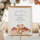 Welcome guests to your celebration with this charming fall teddy bear baby shower sign. Featuring a sweet watercolor teddy bear surrounded by pumpkins in warm autumn tones, this design is perfect for adding a cozy and festive touch to your event.