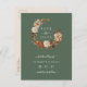 This elegant save the date postcard features a beautiful wreath of watercolor terracotta, taupe, and brown leaves and flowers on a sage green background with white text. The back is taupe with brown text that coordinates with the artwork on the front. This is part of the Autumn Romance Collection.