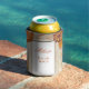 Fall theme bridal shower can cooler features a lovely flower and wood image combined to perfection. Showing a wooden picture frame, the bride's name and "Bride to be" with "wedding date" is displayed in orange font.