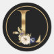 FALL THEME GOLD MONOGRAM L WITH PUMPKINS CLASSIC ROUND STICKER