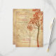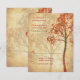 Fall tree wedding RSVP reply card. The design represents a tree in autumn colors of burnt orange and green situated on a cream aged parchment background. This could also be used a reception, direction, or accommodation card with changes to the text.