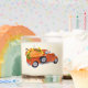 Orange vintage pickup truck with pumpkins and sunflowers in the back
