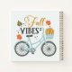 The "Fall Vibes" design is a charming and whimsical illustration that perfectly captures the essence of autumn. The central element of the design is a vintage-style bicycle rendered in a soft, pastel blue color. The bicycle has a classic, retro look with curved handlebars and a basket attached to the front.
