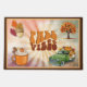 A truly stunning and colorful doormat for anyone who loves the Autumn season! This one holds the words "FALL VIBES" in the center and each corner has a fall-related design: an acorn, a latte, a pickup truck toting sunflowers, and a tree with an abundance of fall leaves.