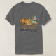 My 11 yo wore adult XL (5’7” 165#). The 8yo is small framed. She wore adult small and tied it in the back. Grandma wore adult large with long sleeve shirt underneath. Tall girl adult medium. Dark haired male adult large. Good quality dark Heather gray, Gildan brand shirt. -it was next up from basic choice and cost about $20 per shirt. Not too thick or thin. Washed and dried well, no major shrinkage. Not see-through. Can wear a bra under it fine. Screen print is just as shown and well done, front and back.