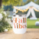 This stylish and vibrant fall design features the phrase "Fall Vibes" in a bold, retro-inspired font that exudes a warm and inviting energy. The text is set in a playful mix of autumnal colors, including rich oranges, soft pinks, and warm browns, perfectly capturing the essence of the season. Surrounding the text are small star-like sparkles that add a touch of whimsy and magic, enhancing the overall festive feel of the design. The large, chunky letters with their soft curves give the design a vintage yet contemporary appeal.
