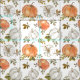 This design showcases a serene and elegant autumn pattern featuring watercolor pumpkins and foliage. The design includes pumpkins in soft shades of orange, white, and muted green, each delicately painted with subtle shading and texture. Surrounding the pumpkins are sprigs of fall leaves in varying tones of green, yellow, and brown, adding a natural and earthy feel to the pattern. The background is a clean white, which allows the watercolor elements to stand out beautifully. The overall design is both tranquil and festive, perfect for capturing the essence of the fall season in a refined and artistic way.