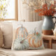 A cozy fall accent pillow featuring hand-painted watercolor pumpkins in soft orange, cream, and sage tones. The rustic farmhouse style and neutral background make it a versatile piece for autumn decorating — perfect for couches, chairs, porch swings, or creating a warm seasonal touch in bedrooms and living spaces. A timeless design for those who love cottagecore charm and cozy fall gatherings.